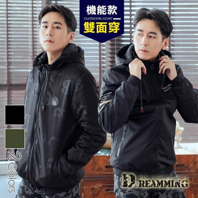 Dreamming美式風格雙面穿鋪棉連帽飛行夾克 防風(共二色)