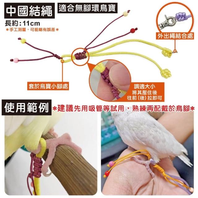 多功能彈性鋼索外出繩 小(三節式專利設計 小型中小型鸚鵡鳥類 外出用品 顏色隨機 附中國結繩)