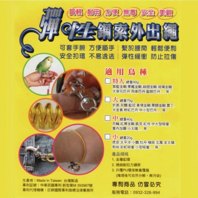 多功能彈性鋼索外出繩 小(三節式專利設計 小型中小型鸚鵡鳥類 外出用品 顏色隨機 附中國結繩)