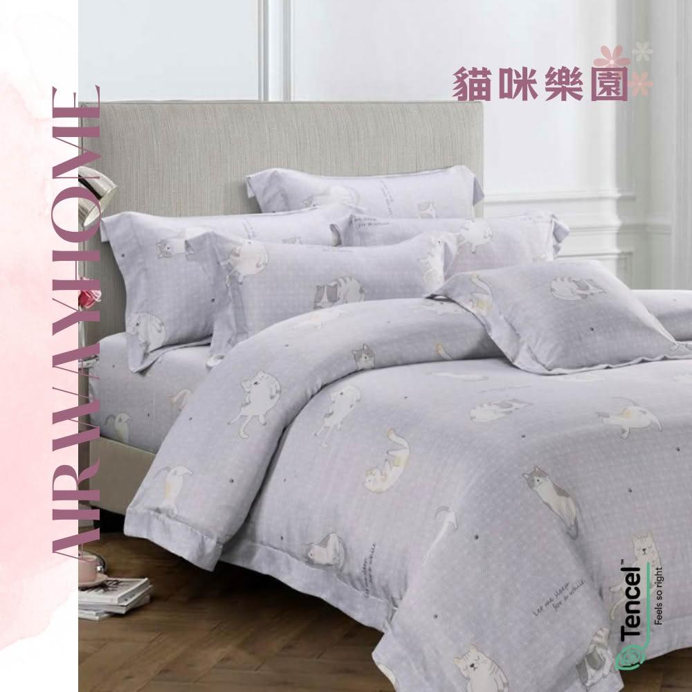 艾唯家居萊賽爾天絲吸濕排汗床包 貓咪樂園 裸睡首選 單人/雙人/加大/特大/鋪棉兩用被/薄被套