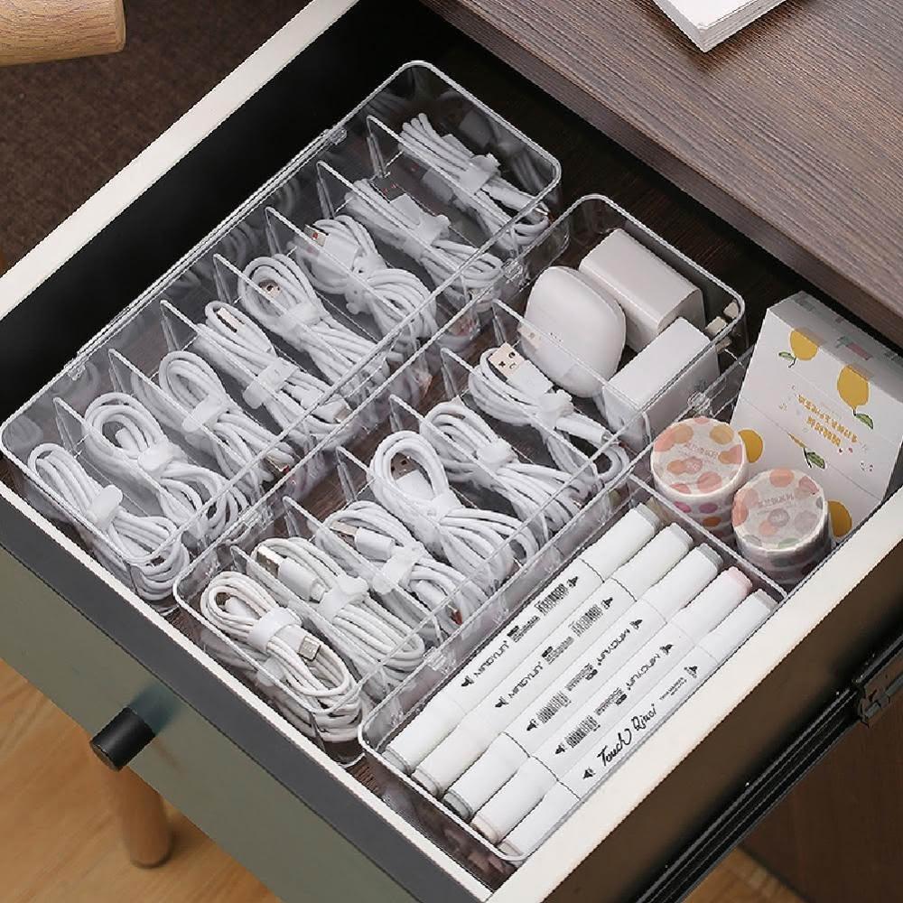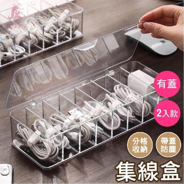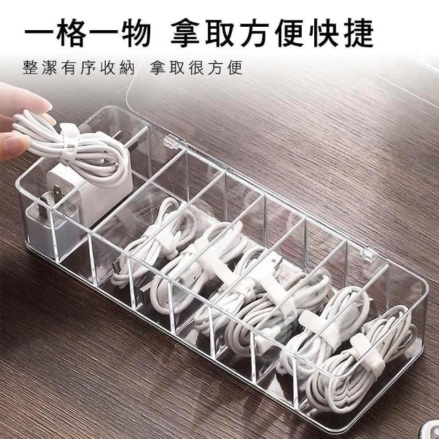 萍萍夫人八格加大USB線收納盒〈掀蓋款-2入組〉 收納盒大容量 高效整理 收納 桌面整潔 實用 線材防塵居家收納