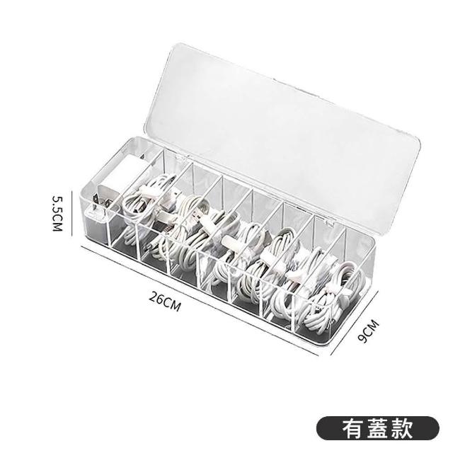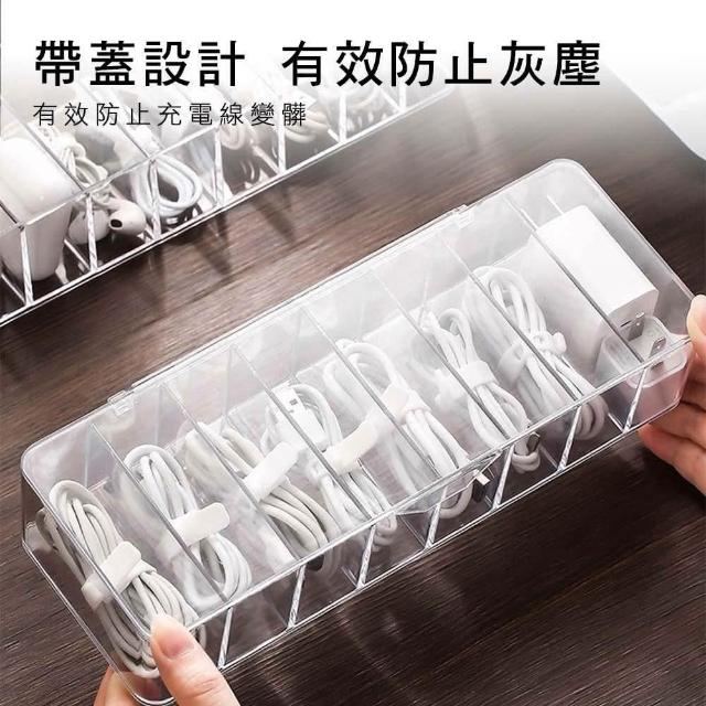 萍萍夫人八格加大USB線收納盒〈掀蓋款-2入組〉 收納盒大容量 高效整理 收納 桌面整潔 實用 線材防塵居家收納