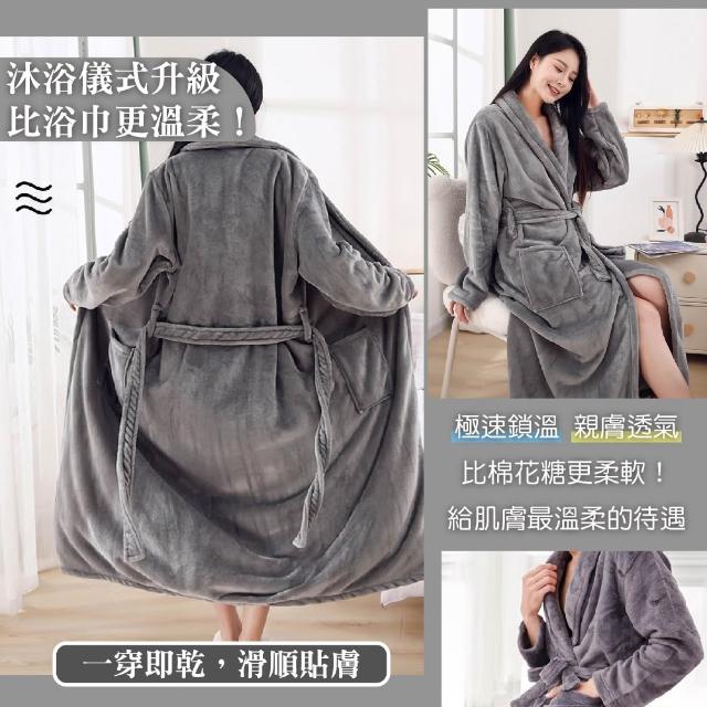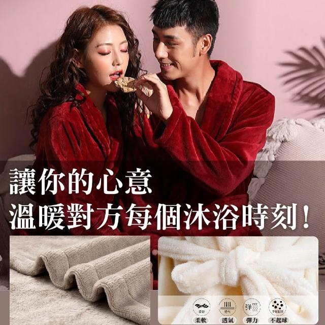 珊瑚絨浴袍睡袍〈女/男-情侶款 吸水速乾 加厚保暖 睡衣 居家服 法蘭絨 飯店風 大尺碼 柔軟親膚