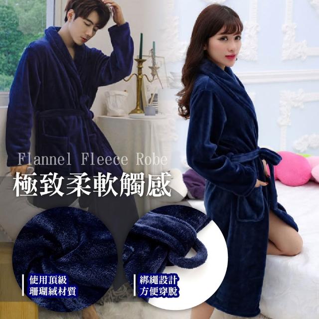 珊瑚絨浴袍睡袍〈女/男-情侶款 吸水速乾 加厚保暖 睡衣 居家服 法蘭絨 飯店風 大尺碼 柔軟親膚