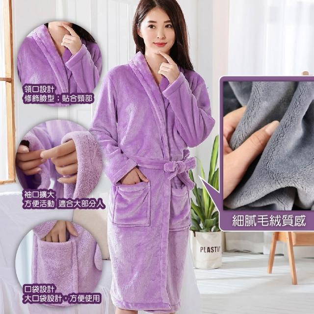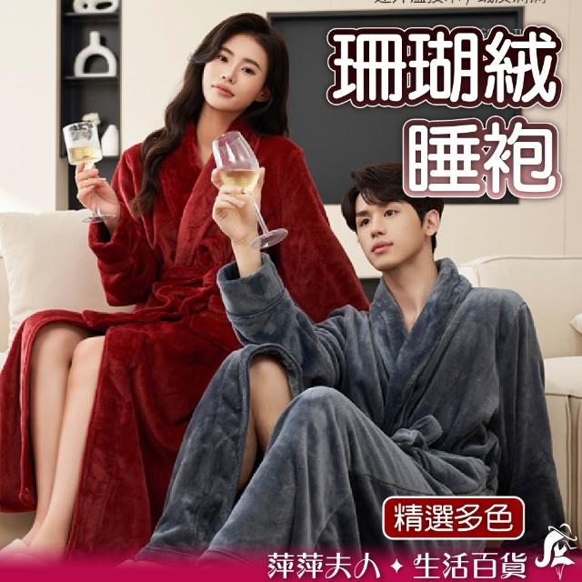 珊瑚絨浴袍睡袍〈女/男-情侶款 吸水速乾 加厚保暖 睡衣 居家服 法蘭絨 飯店風 大尺碼 柔軟親膚