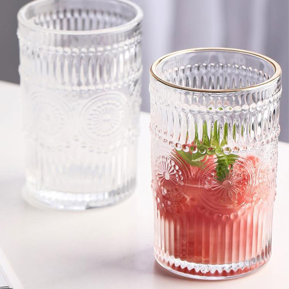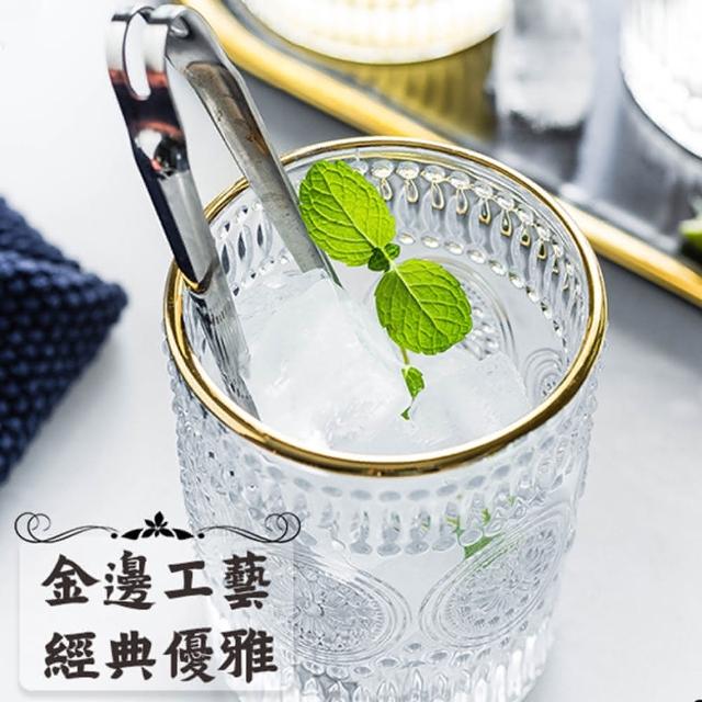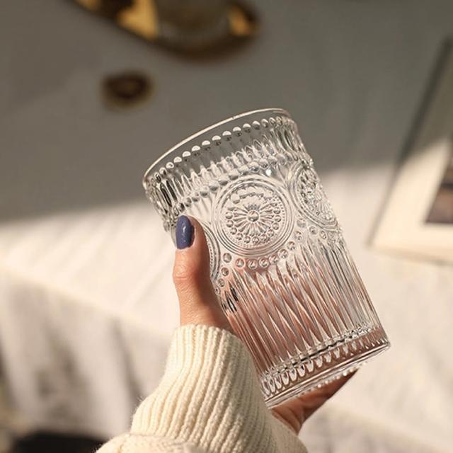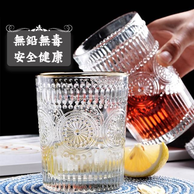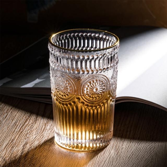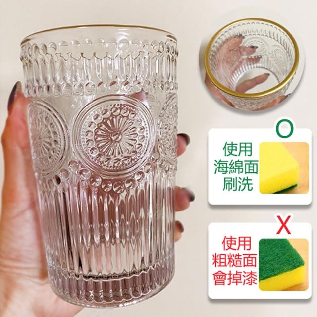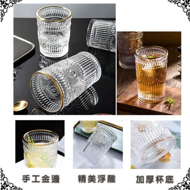 日日好事345ML浮雕太陽花玻璃杯 金邊玻璃杯 杯子(耐熱玻璃杯 水杯 茶杯 果汁杯)
