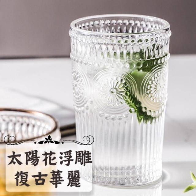 日日好事345ML浮雕太陽花玻璃杯 金邊玻璃杯 杯子(耐熱玻璃杯 水杯 茶杯 果汁杯)