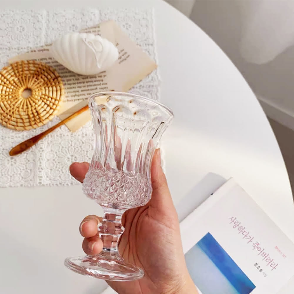 日日好事韓式浮雕矮腳酒杯 雕花 玻璃杯 水杯 聖代杯(紅酒杯 酒杯 ins 果汁杯)