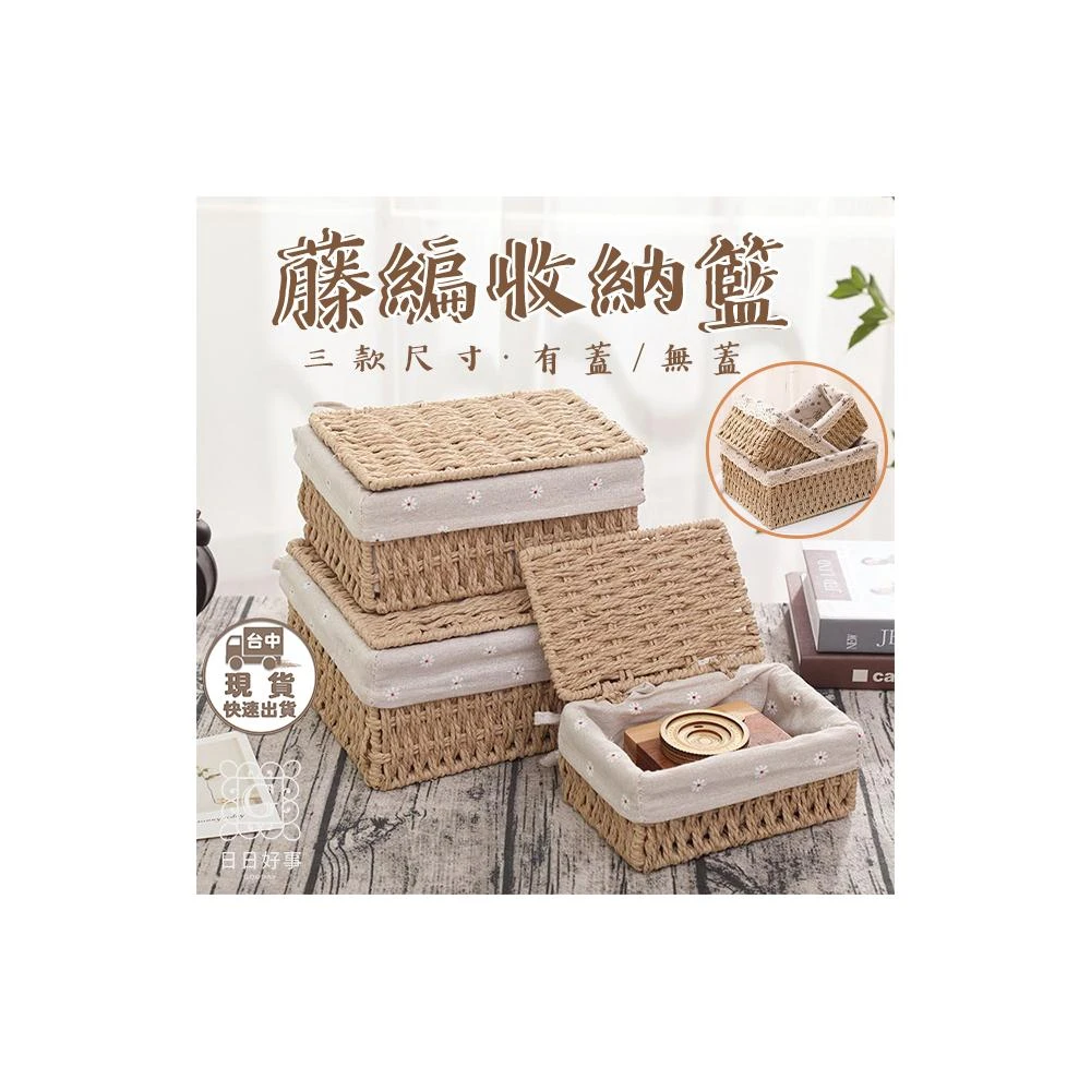 藤編收納盒 草編工藝藤編編織竹籃收納籃置物籃零食玩具帶蓋收納箱化妝品收納盒桌面手機鑰匙收納筐