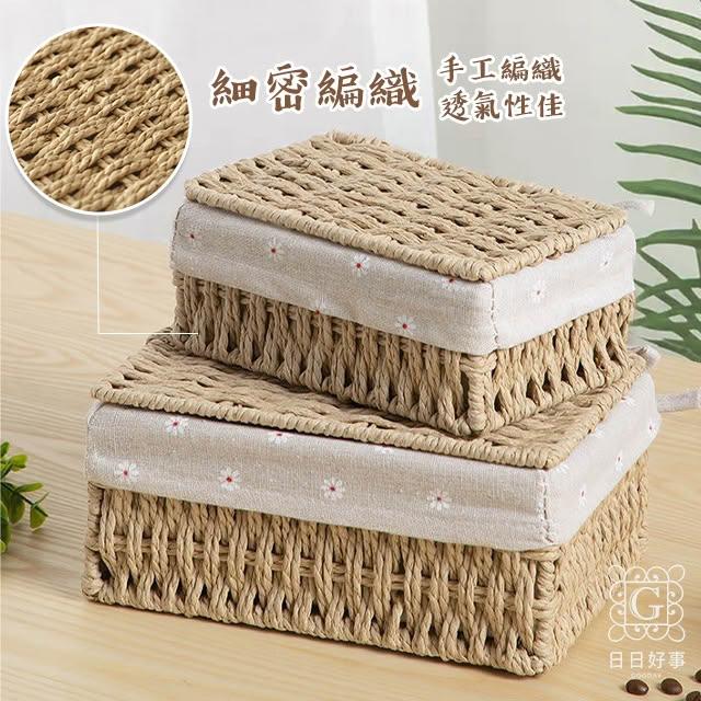 藤編收納盒 草編工藝藤編編織竹籃收納籃置物籃零食玩具帶蓋收納箱化妝品收納盒桌面手機鑰匙收納筐