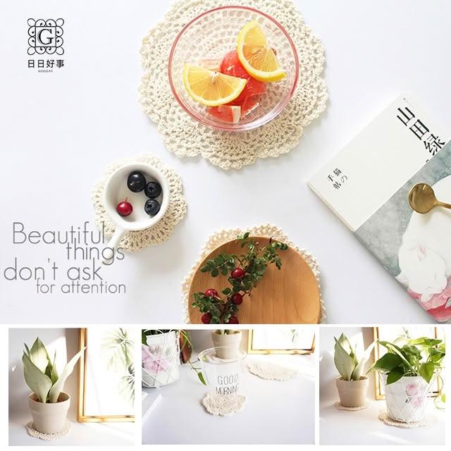 INS蕾絲手鉤杯墊 隔熱墊 餐墊 杯墊 隔熱 拍照 佈景 布質杯墊 棉麻 蕾絲 防燙墊子 編織圓形杯墊