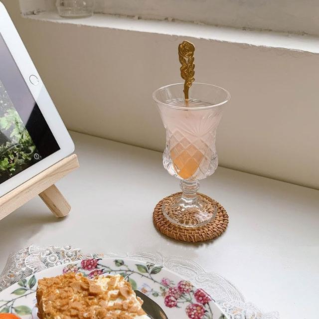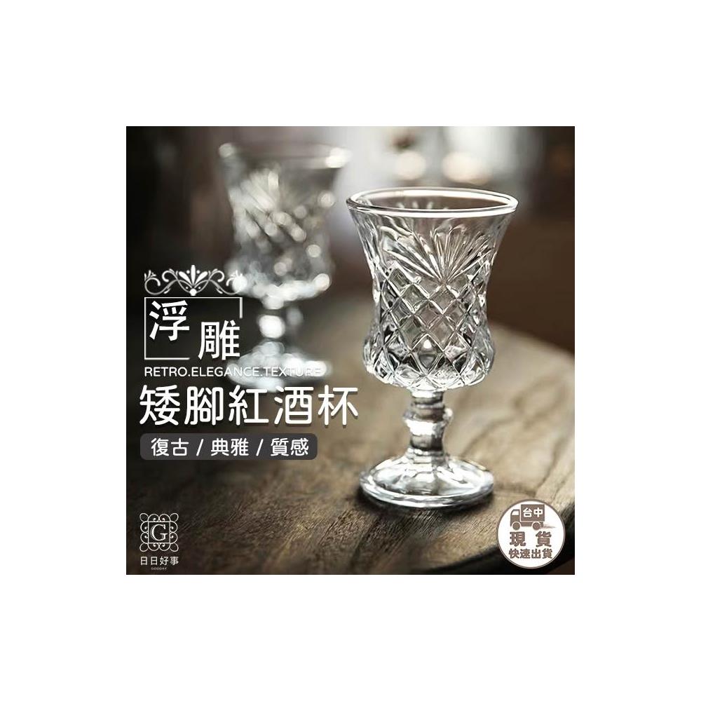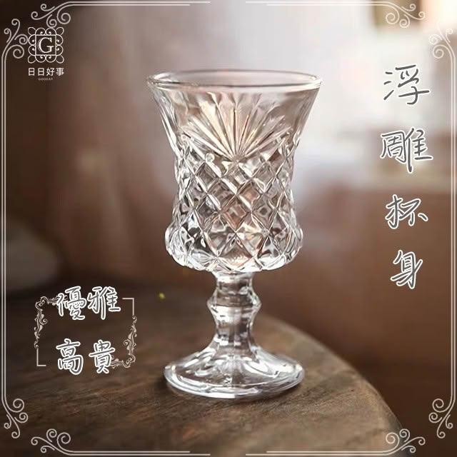 韓式浮雕矮腳酒杯 雕花 玻璃杯 水杯 聖代杯 紅酒杯 酒杯 ins 果汁杯 優格杯 點心杯 矮腳杯