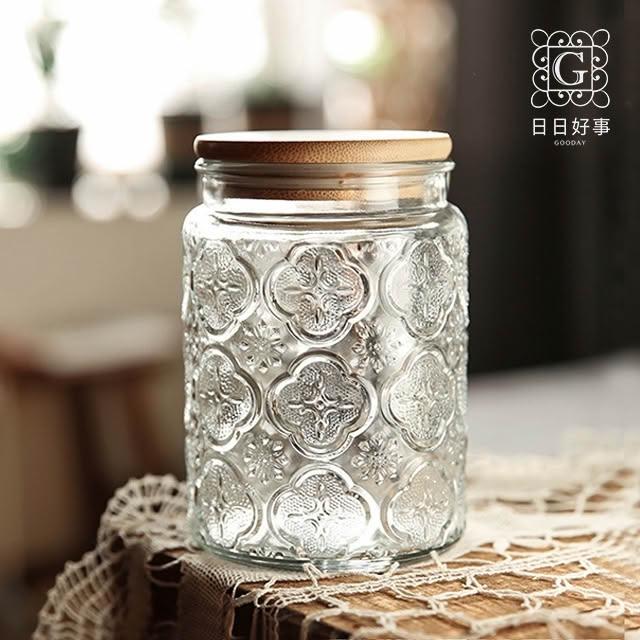 復古海棠花玻璃罐 收納 玻璃罐 密封罐 食物收納罐 窗花玻璃罐 糖果罐 文青玻璃罐 復古糖果罐