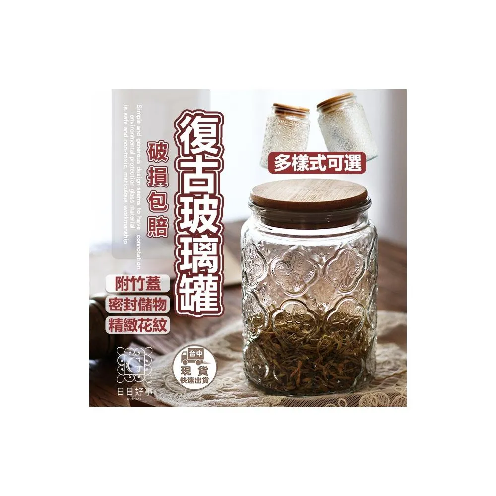 復古海棠花玻璃罐 收納 玻璃罐 密封罐 食物收納罐 窗花玻璃罐 糖果罐 文青玻璃罐 復古糖果罐
