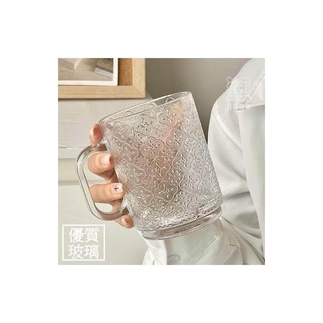 海棠花玻璃杯 杯子 浮雕早餐杯 耐熱玻璃杯 水杯 麥片杯 玻璃杯 奶茶杯 早餐杯 咖啡杯 玻璃杯 馬克杯