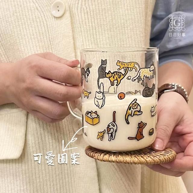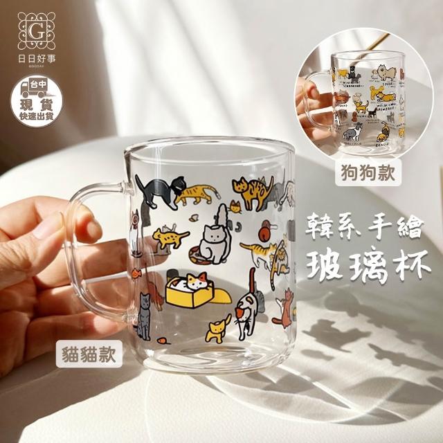 手繪插畫玻璃杯 貓咪杯小狗杯 水杯 牛奶杯 杯子 酒杯 馬克杯 可愛萌寵小狗小貓玻璃插畫牛奶玻璃杯燒酒杯