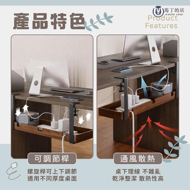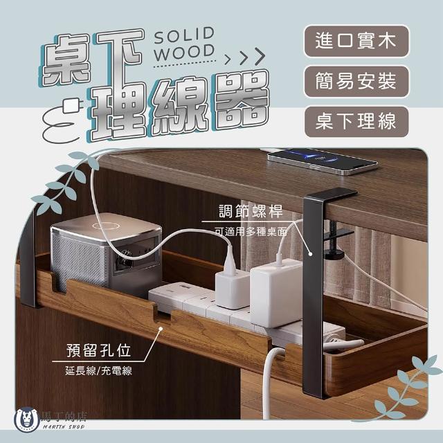 Martin Shop 馬丁的店桌下理線器 免打孔|實木集線槽 插座收納架 電線整理 延長線固定 電腦桌走線隱藏 辦公室必備