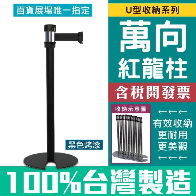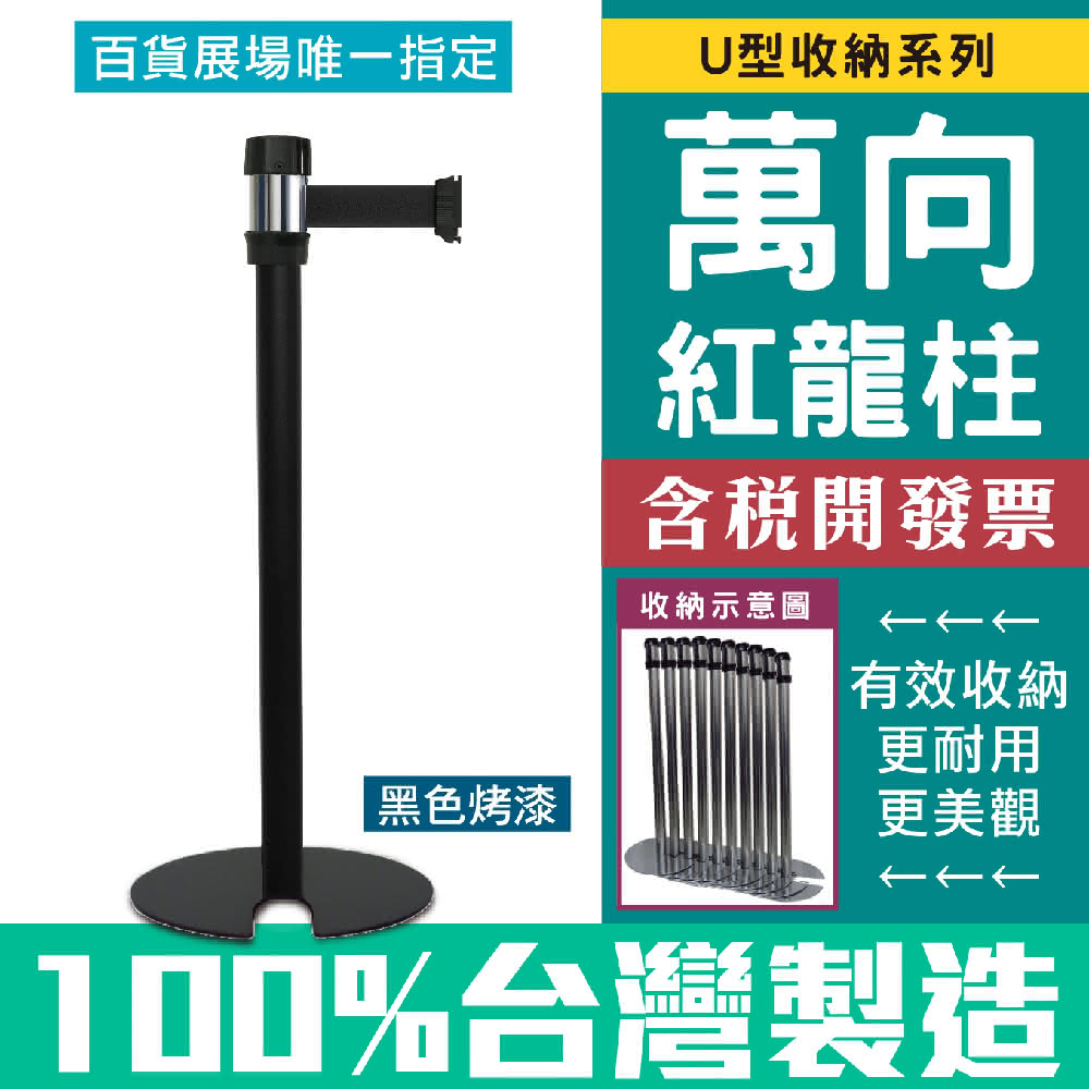 兩隻臺灣製造 萬向黑色烤漆U型紅龍柱 收納型 帶長兩米 (伸縮圍欄柱 不鏽鋼圍欄 排隊圍欄 圍籬 禁止通行 停車拒馬)