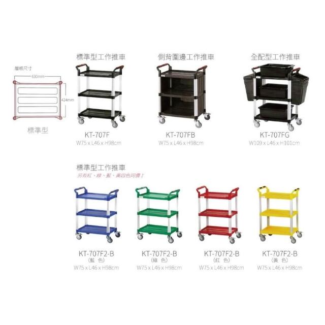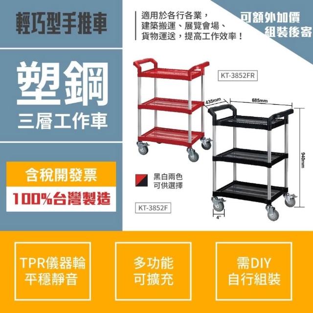 雙把三層手推車(小)KT-3852F (黑/紅)工作推車 房務車 餐飲清潔車 方便清潔 抗菌易清洗 熱炒店 符合衛生