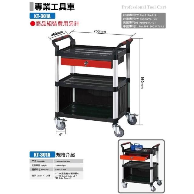 台灣製造 KT-301A《專業工具車》黑 工作車 手推車 工具車 餐車 修車廠必備 工具收納 效率加速
