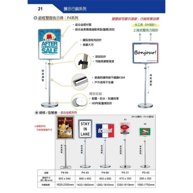 鋁框告示牌 橫向式(A3)P4-32 告示牌 公佈欄 指示牌 公告牌 牌子 通知牌 站立式插牌