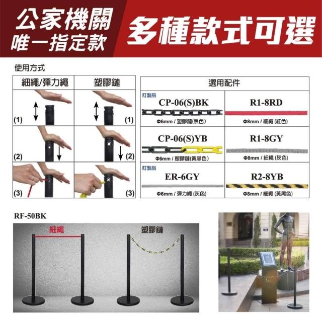 臺灣製造 矮消光黑紅龍柱 藝廊欄柱-可收納款 藝廊 美術館 矮欄柱 極細桿 繩龍柱彈力繩 展場圍籬 美觀 RF-19BU