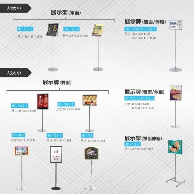 台灣製 半開雙面展示看板 MY-710-1-3MM 布告欄 展板 海報板 立式展板 展示架 指示牌 廣告板 學校 活動