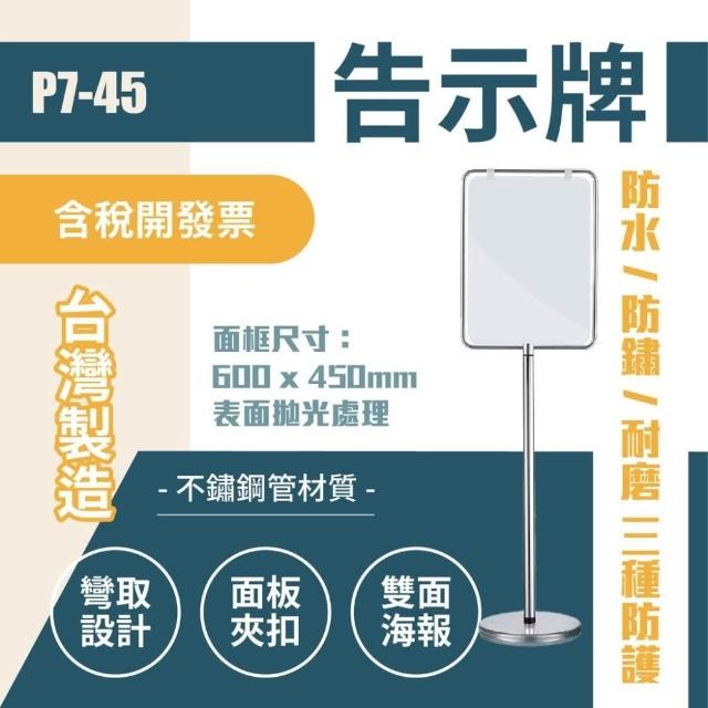 台灣製造 不鏽鋼管告示牌 直向式(中)P7-45 指示牌 夾扣型不鏽鋼管雙面告示牌(直向) 廣告牌 公告立牌 不銹鋼告示