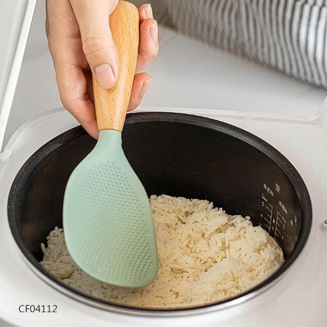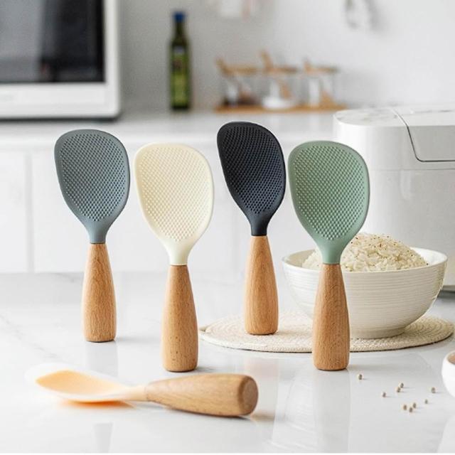 木柄可立式矽膠飯杓