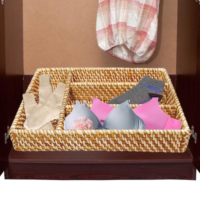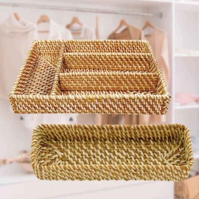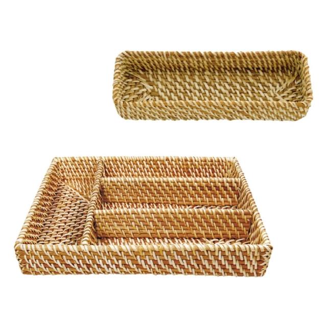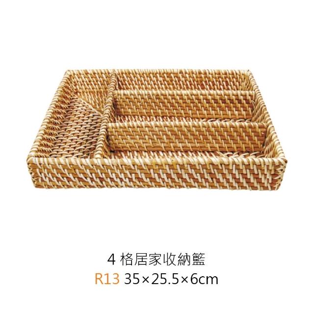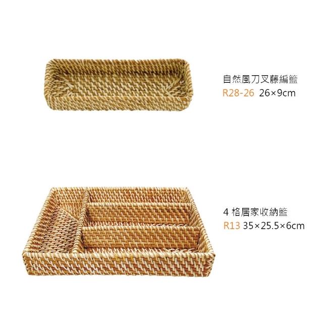 編織籃系列 編織籃 藤編收納籃 藤編籃 收納籃 置物籃 編織收納籃 收納筐 自然風刀叉藤編籃 四格居家收納籃
