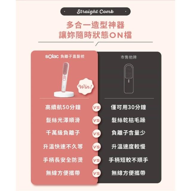 SOLAC負離子無線直髮梳 SGT-218 (溫控造型梳 角蛋白護髮 防燙梳齒 超輕巧 超強續航__Kimi極美職人推薦)