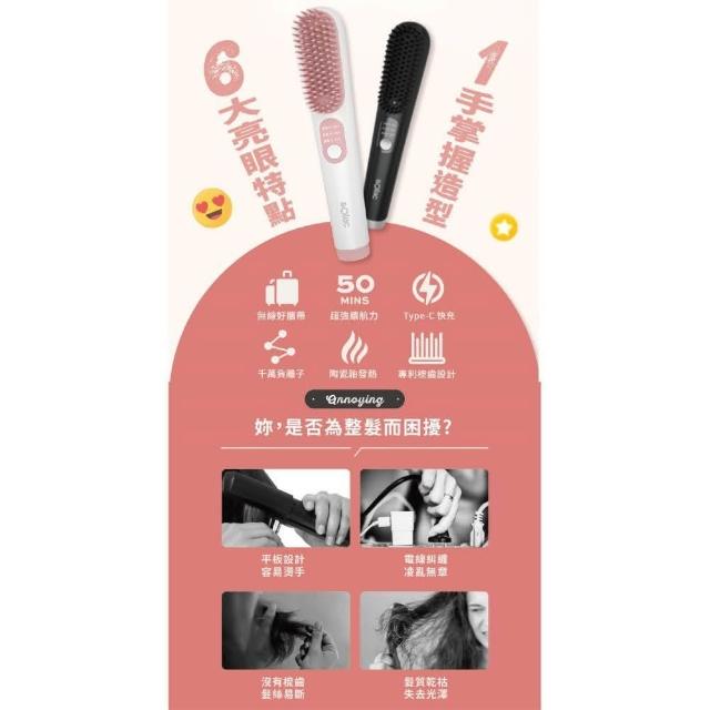 SOLAC負離子無線直髮梳 SGT-218 (溫控造型梳 角蛋白護髮 防燙梳齒 超輕巧 超強續航__Kimi極美職人推薦)