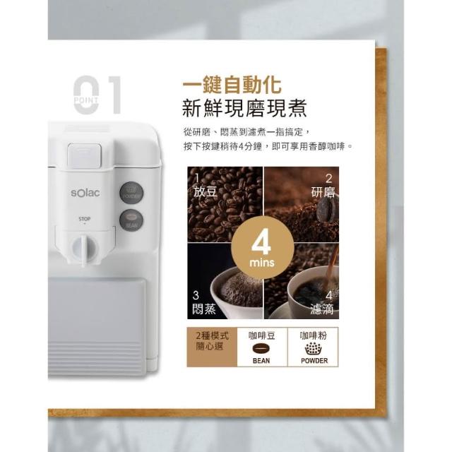 SOLAC自動研磨咖啡機 SCM-C58 (自動磨豆 現磨咖啡 手沖悶蒸 精品級 咖啡粉 簡易清洗__Kimi極美職人推薦)