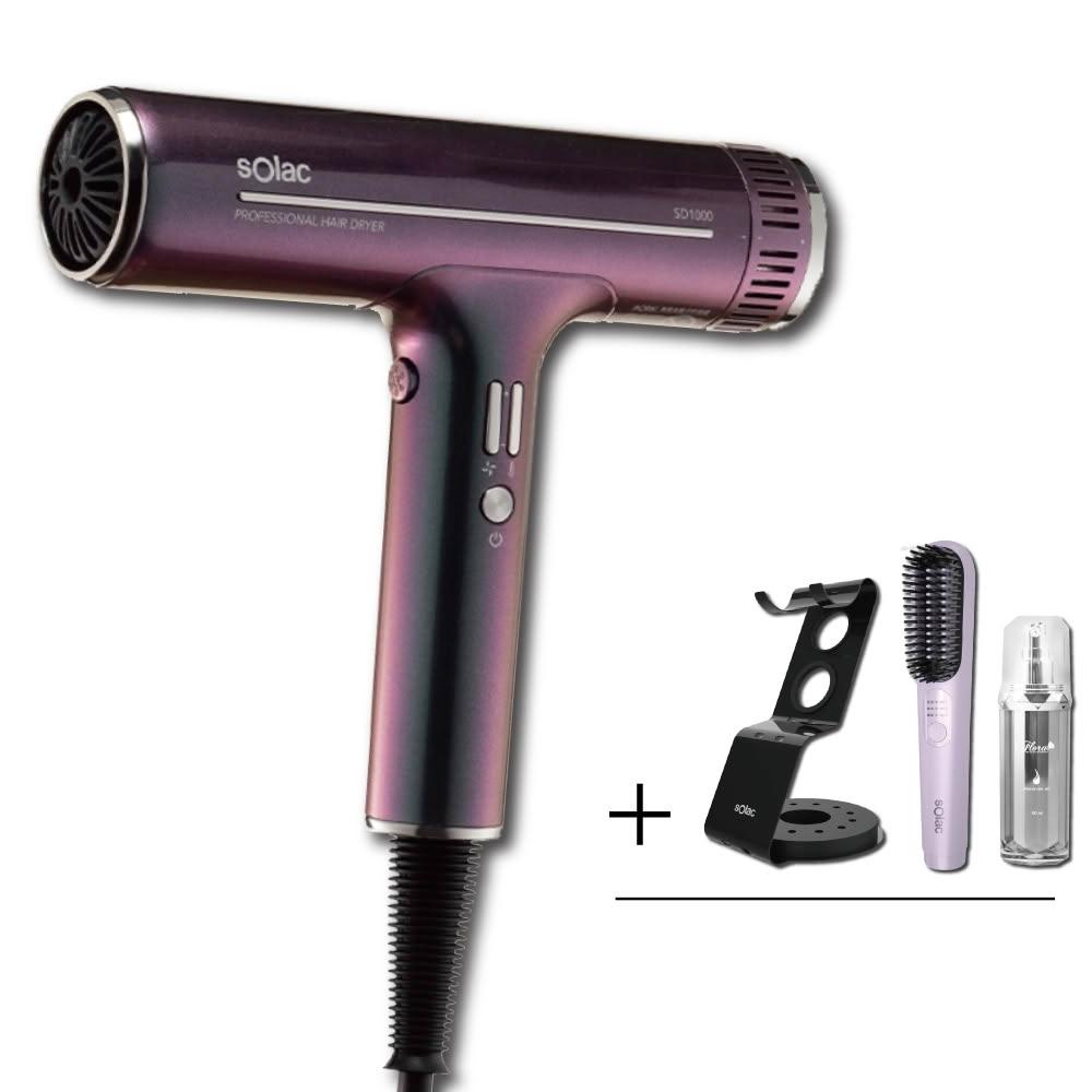 SOLAC搭贈組|專業負離子吹風機 SD-1000 (頂級沙龍 速乾護髮 極輕美型 大風量 附烘罩造型組_Kimi極美職人推薦)