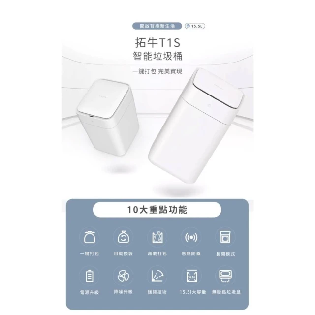 townew 拓牛T1S 拓牛智能垃圾桶 (一鍵打包 自動換袋 感應開蓋 超大容量 增強版 台灣公司貨__Kimi極美職人推薦)