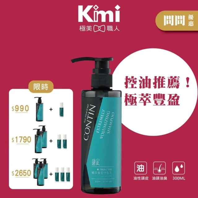 CONTIN 康定搭贈組|極萃豐盈洗髮乳 多入組 (洗髮精 油頭蓬鬆 養髮酵素升級 強健髮根 無矽靈 300ml_Kimi極美職人推薦)
