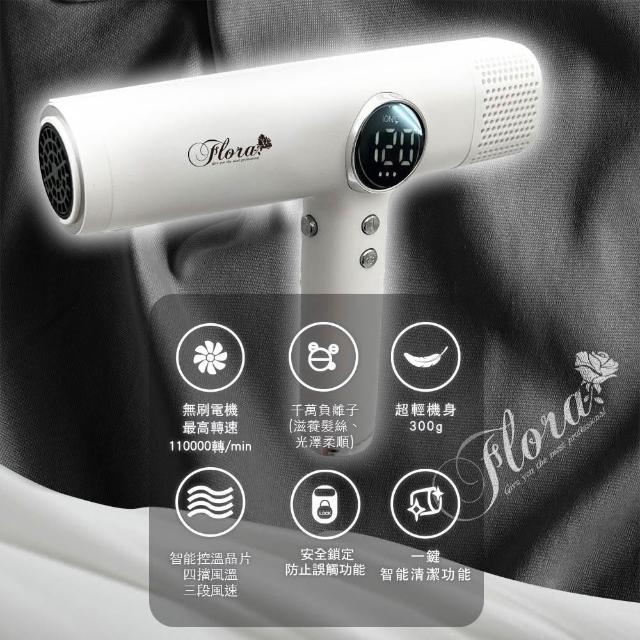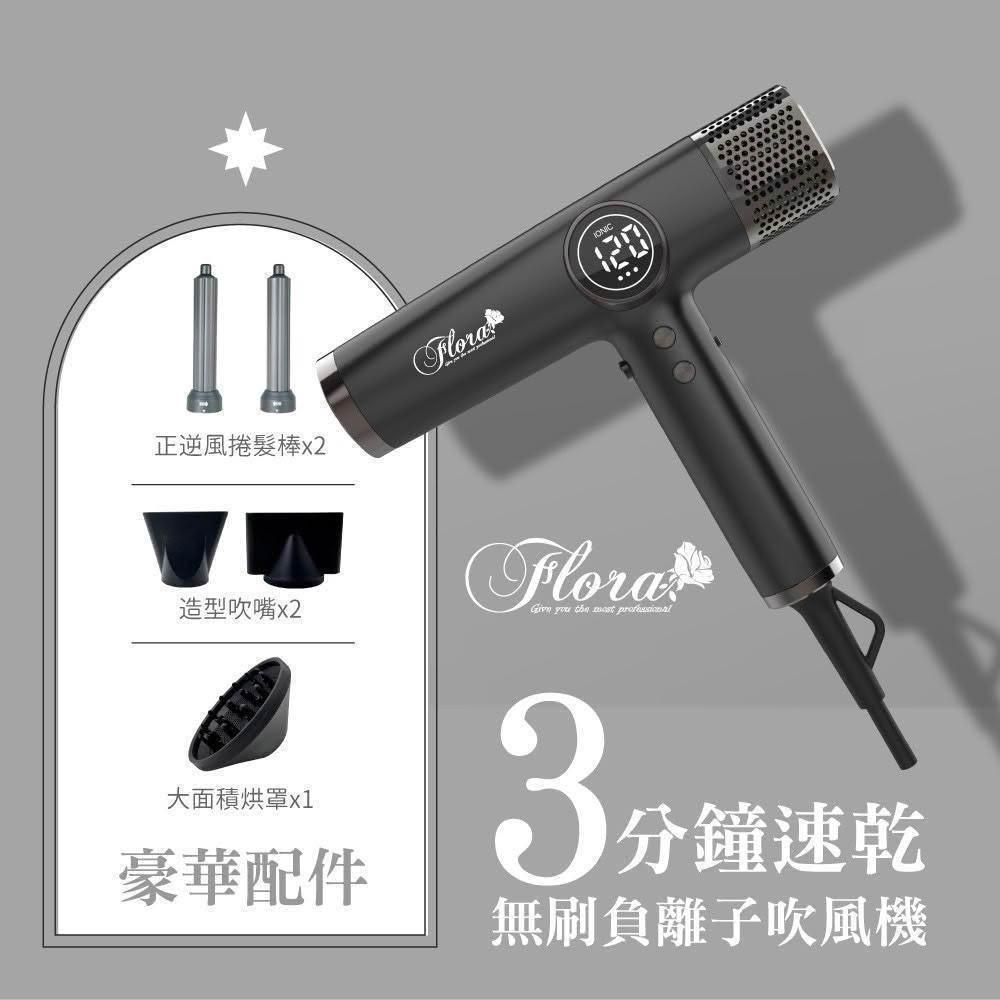 Flora負離子無刷吹風機 HD-3238 (三代沙龍級專用 速乾護髮 輕量機身 附磁吸捲髮棒__Kimi極美職人推薦)