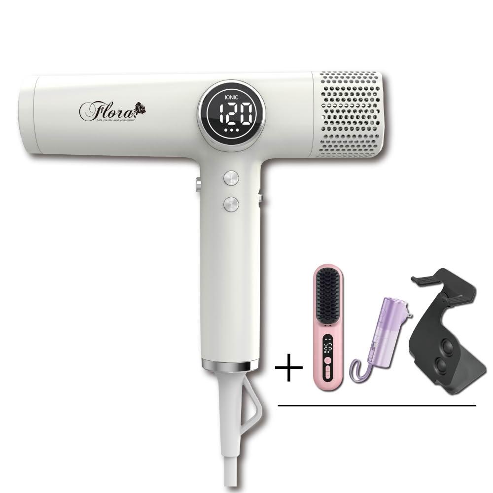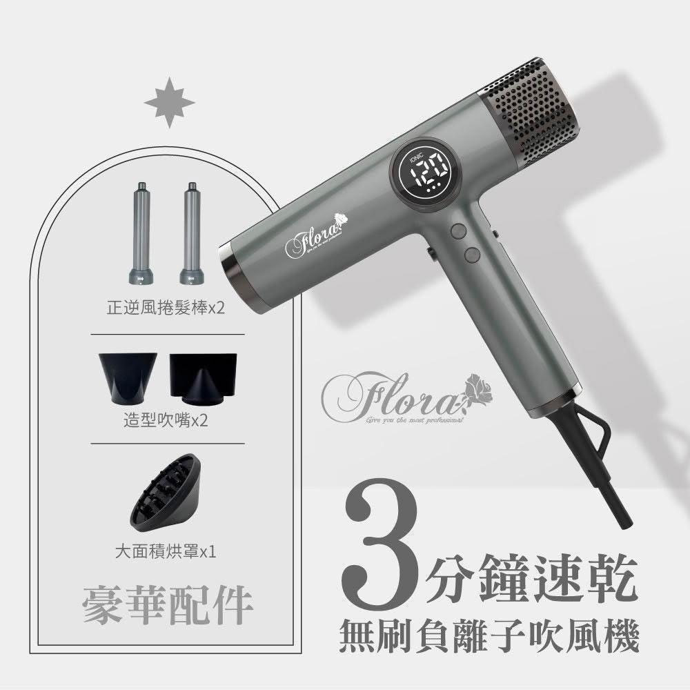 Flora搭贈組|負離子無刷吹風機 HD-3238 (三代沙龍級專用 速乾護髮 輕量機身 附磁吸捲髮棒__Kimi極美職人推薦)