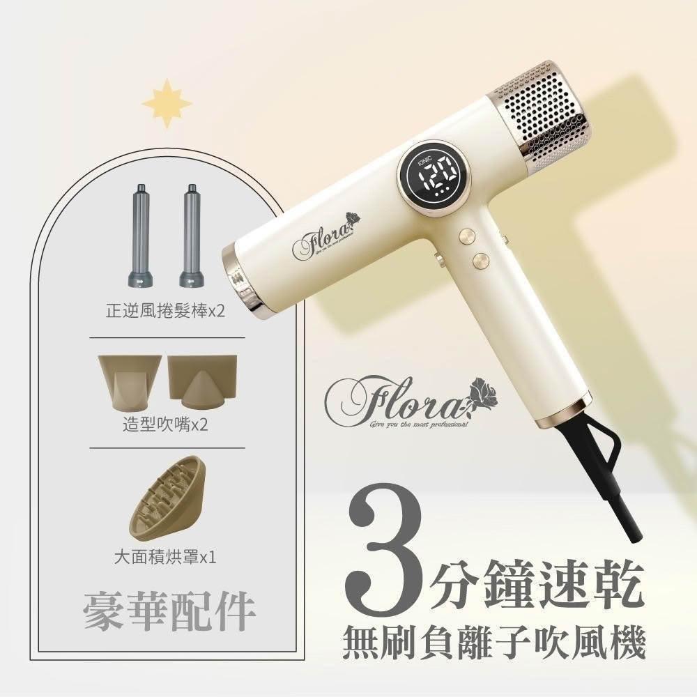Flora搭贈組|負離子無刷吹風機 HD-3238 (三代沙龍級專用 速乾護髮 輕量機身 附磁吸捲髮棒__Kimi極美職人推薦)