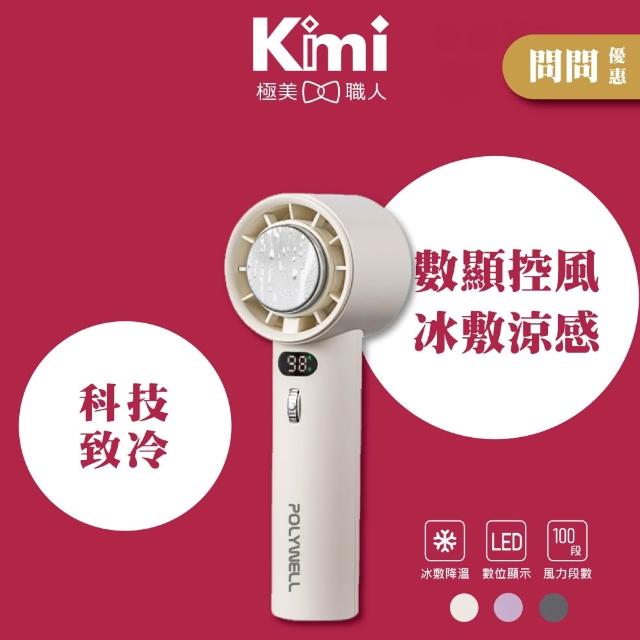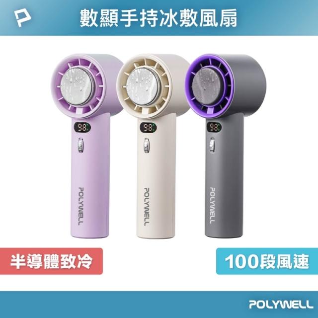 POLYWELL數顯手持冰敷風扇 (百段風速 半導體致冷技術 Type-C充電 附掛繩__Kimi極美職人推薦)