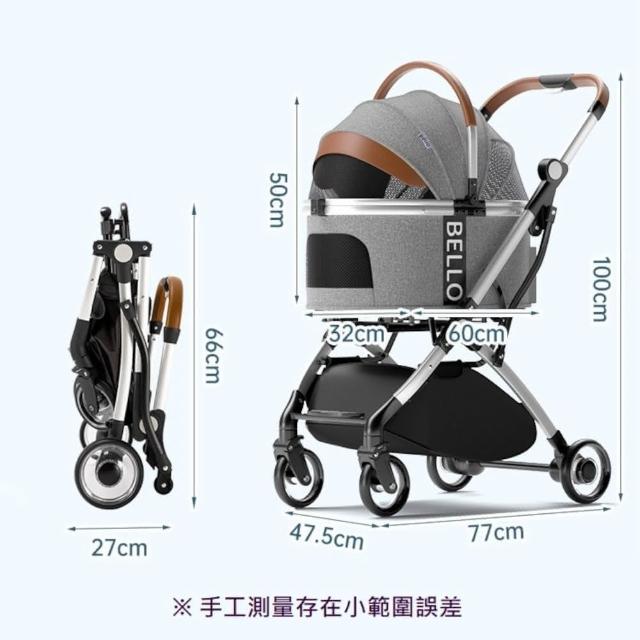 BelloW1分離式拉桿寵物推車 WM01-T(鋁合金管/捷運高鐵台鐵可/可摺疊收納/貓狗適用)