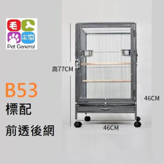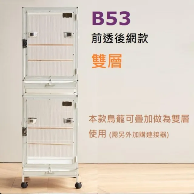 小型鸚鵡鳥籠 B53_前透後網款(室內鳥籠/透明門方便觀賞/不鏽鋼食杯/適合小型鸚鵡)