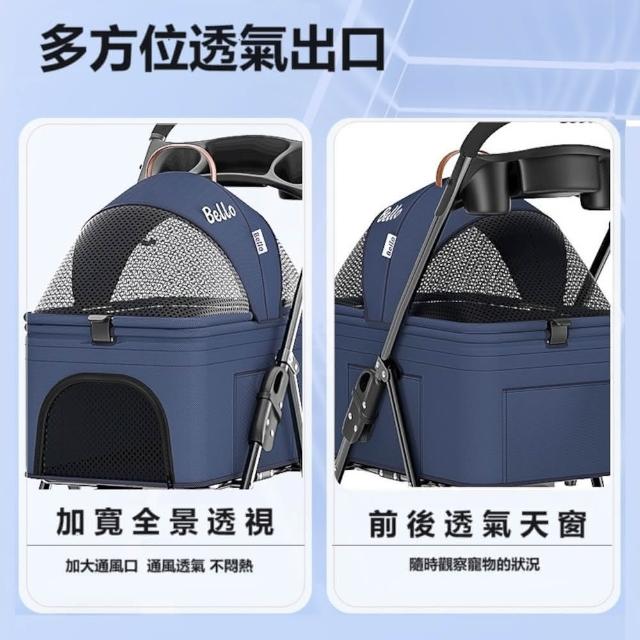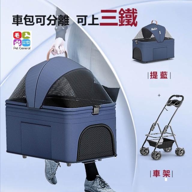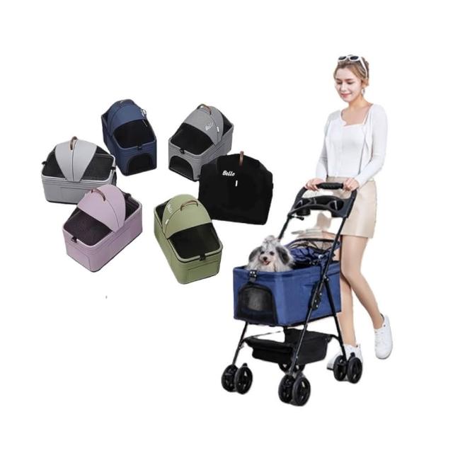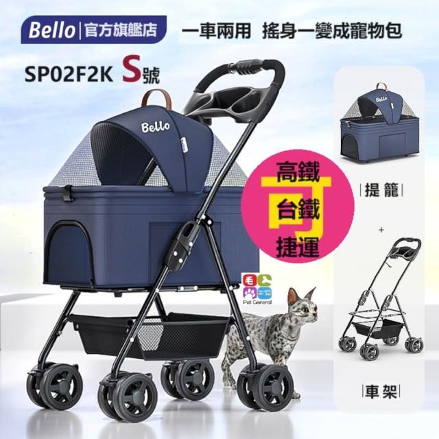 Bello可上三鐵 車包分離款寵物手推車-S號 SP02F2K(適合小型犬貓咪/四輪萬向/一鍵折疊)