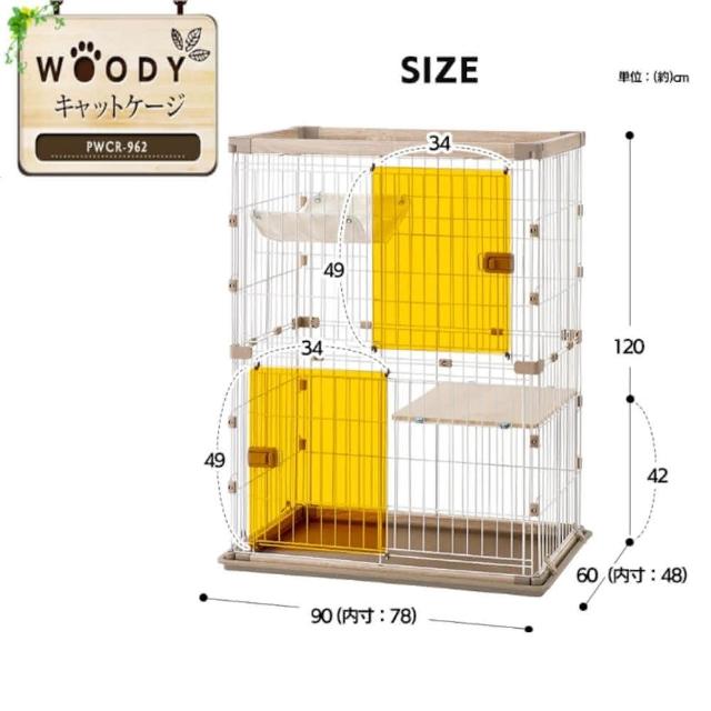 IRIS OHYAMA 愛麗思歐雅瑪雙層木質貓籠 PWCR-962(側開滑動門/木與紋理/組裝簡易/附原廠吊床)