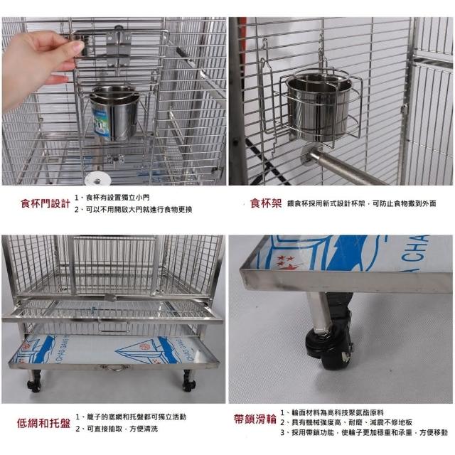 304不鏽鋼鸚鵡鳥籠 L號小號(適用小型鸚鵡/附輪子/有外掛口/不鏽鋼托盤)