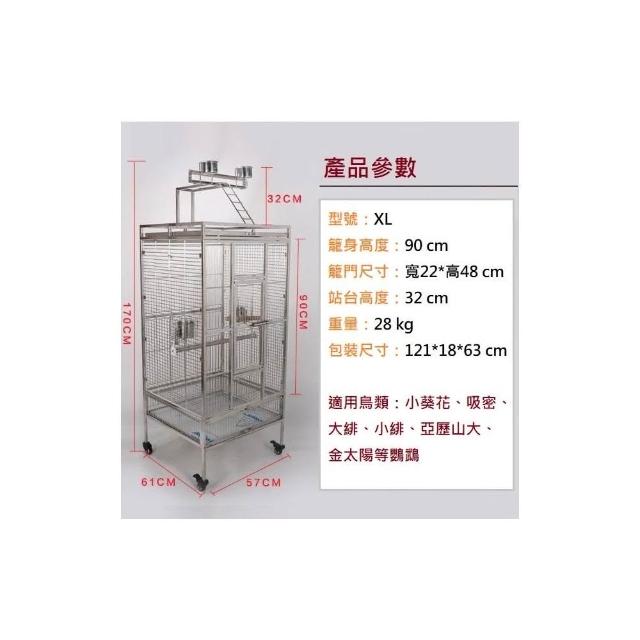 304不鏽鋼鸚鵡鳥籠 XL號大號(適用中小型鸚鵡/附輪子/有外掛口/不鏽鋼托盤)
