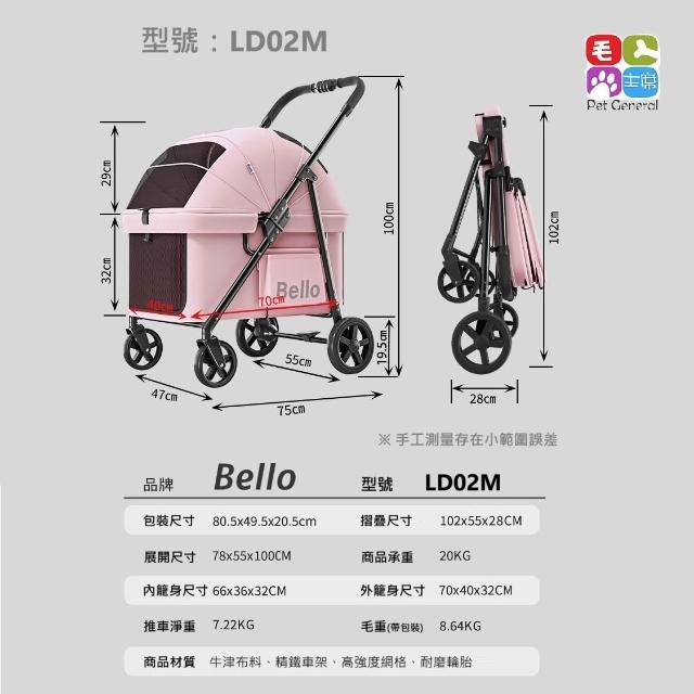 BelloD6小型寵物推車 緬因雪納瑞柯基臘腸適用一鍵折疊大空間承重20公斤BELLO LD02M LD02M