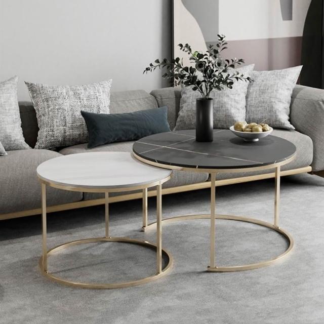 Noname真實岩板 岩板茶几 岩板子母桌(沙發茶几 輕奢圓茶几桌 沙發桌 子母桌 圓茶几 整組茶几)