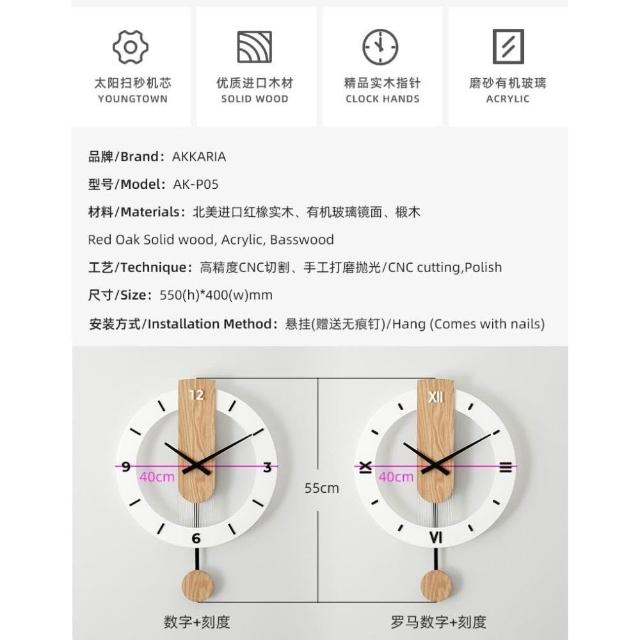 Noname簡約 創意時鐘 16吋 40CM 北歐簡約 擺鐘 靜音時鐘 靜音掛鐘 木掛鐘 木時鐘 現代簡約 時尚木掛鐘 北歐掛鐘