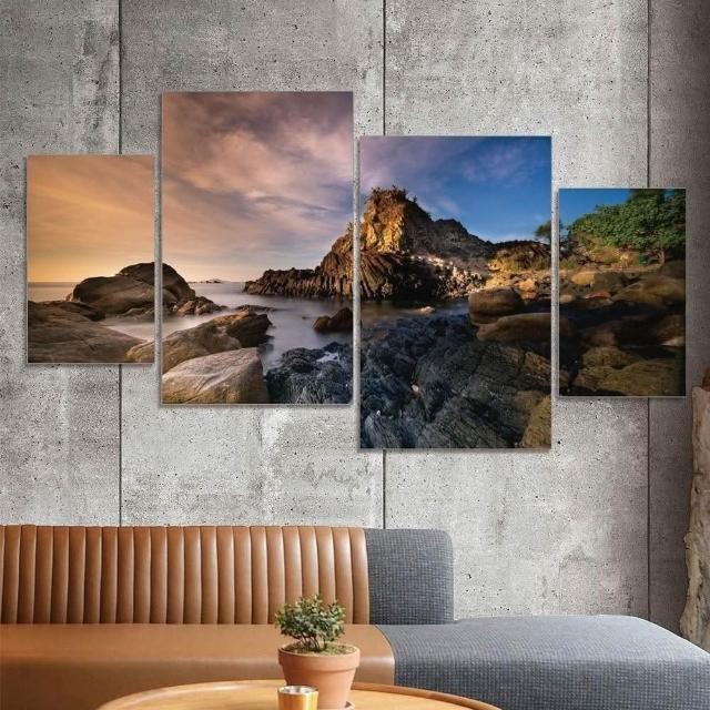 Noname【山與海】現貨 台灣製作 掛畫 4幅一組 無溝槽板畫 板式畫 實芯薄板 客廳掛畫 聯畫裝飾畫 山景 海洋 北歐畫